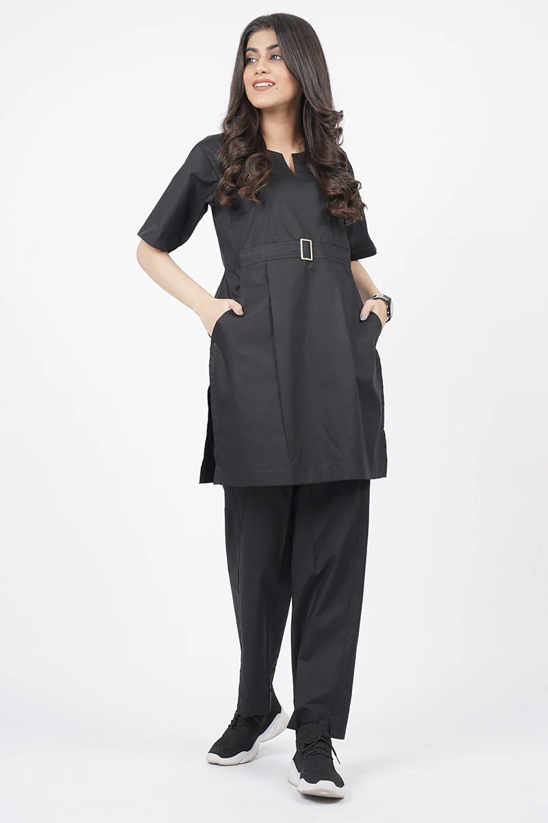 - Round Neckline with V Slit